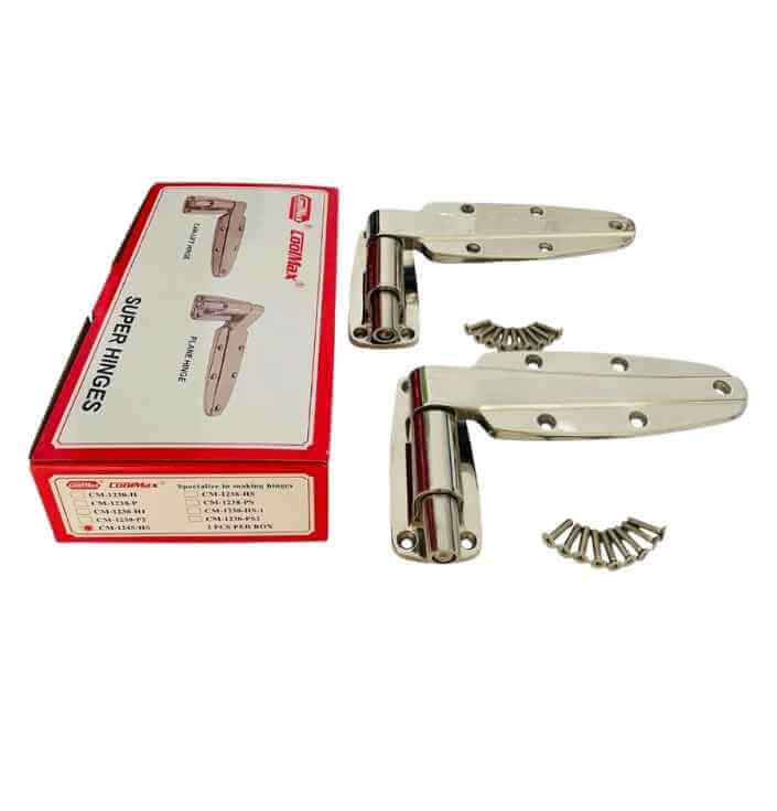 Bản lề cửa kho lạnh CM-1245-HS là loại bản lề nâng và được dùng rất phổ biến, dùng để lắp cho cửa các kho lạnh, cửa tủ cấp đông, … có thể điều chỉnh được độ cao theo yêu cầu lắp đặt và có mức giá thành rẻ nên bản lề CM-1245-HS ngày càng được sử dụng rộng rãi trong các ngành lạnh dân dụng và công nghiệp.