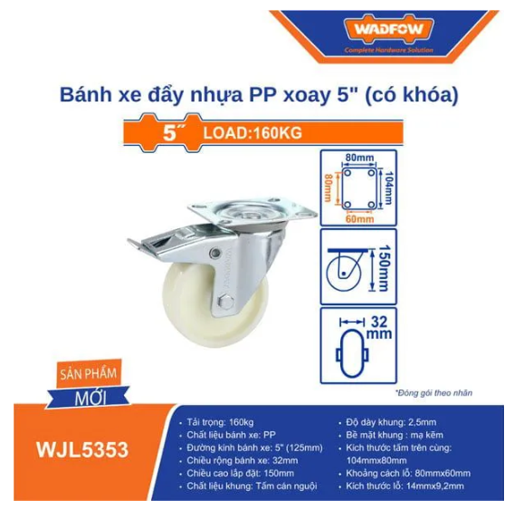 BÁNH XE ĐẨY NHỰA PP XOAY 5" (CÓ KHÓA) WADFOW WJL5353