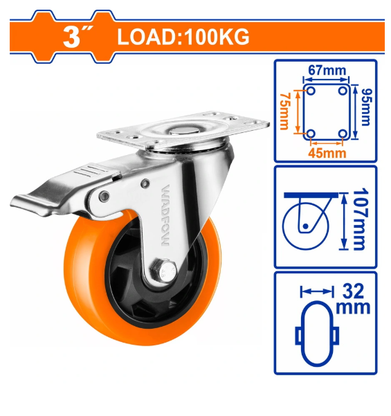 BÁNH XE ĐẨY XOAY 3" CÓ KHÓA WADFOW WJL2333