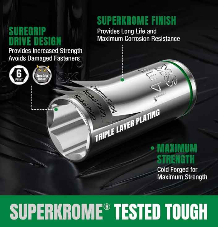 BỘ KHẨU SK TOOLS SK01301 là dòng dụng cụ cầm tay đẳng cấp, được thiết kế để mang lại hiệu suất tối ưu và độ bền truyền đời. Với sự kết hợp hoàn hảo giữa thép Chrome Vanadium xử lý nhiệt và lớp mạ SuperKrome độc quyền, bộ sản phẩm 30 chi tiết này không chỉ là công cụ làm việc mà còn là một chuẩn mực về chất lượng và thẩm mỹ trong ngành cơ khí.