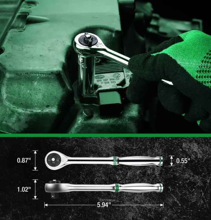 Tay vặn Ratchet 216P chuyên nghiệp: Đầu khẩu 1/4" Drive kết hợp cùng tay vặn bánh cóc Ratchet hoạt động cực kỳ mượt mà, giúp tăng tốc độ thao tác và chịu được lực xiết lớn.