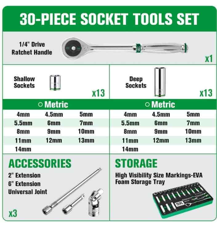 BỘ KHẨU 1/4INCH 30 CHI TIẾT SK TOOLS SK01301
