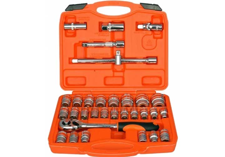 + 19 đầu tuýp 6 cạnh: 8, 9, 10, 11, 12, 13, 14,  15,  16, 17, 18, 19, 20, 21, 22, 24, 27, 30, 32mm