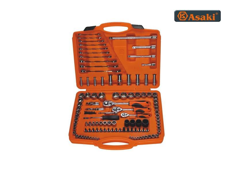 BỘ TUÝP 1/4 + 3/8 + 1/2 INCH HỆ INCH & MÉT 6 CẠNH VÀ 120 CHI TIẾT ASAKI AK-9751