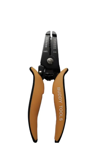 Kìm tuốt dây Buddy BG0021 là sản phẩm chất lượng cao, được chế tạo bằng thép cao cấp và được bọc nhựa tốt. Công cụ này có khả năng cắt được dây điện và tuốt dây điện có độ dày từ 0.2mm đến 0.8mm. Kích thước sản phẩm là 6” (150mm) phù hợp với tay cầm của người dùng.