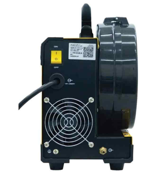 Máy hàn HKMIG200S có thiết kế nhỏ gọn với buồng chứa cuộn dây tích hợp, cho phép chứa cuộn dây hàn từ 1kg đến 5kg. Hộp bảo vệ cuộn dây được lắp đặt chắc chắn ngay trên thân máy, đảm bảo an toàn và thuận tiện khi di chuyển. Với trọng lượng nhẹ và thiết kế thông minh, máy phù hợp cho cả các xưởng gia công nhỏ và công việc hàn di động.