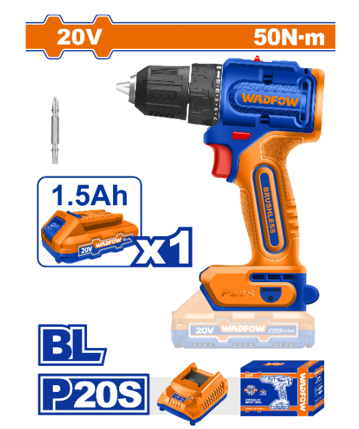 MÁY KHOAN DÙNG PIN 20V (KHÔNG CHỔI THAN) WADFOW - WCDP5521