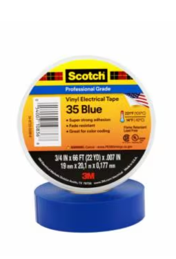 Băng keo điện đa màu Scotch® 35 là loại băng keo điện cao cấp, dày 7 mil, có nhiều màu sắc khác nhau. Băng chống cháy này thích hợp để nhận dạng dây và pha, mã hóa màu sắc của dây dẫn động cơ và hệ thống đường ống, và để đánh dấu các khu vực an toàn. Băng này được định mức 600V và chịu được nhiệt độ từ 14 đến 221 ° F (-10 đến 105 ° C).