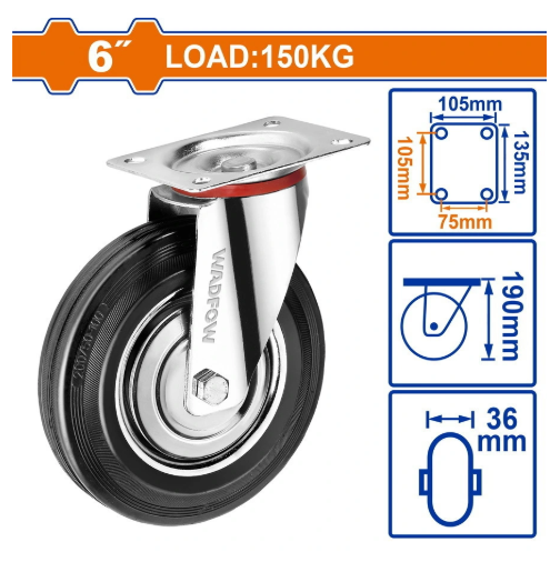 BÁNH XE ĐẨY THÉP + CAO SU XOAY 6" WADFOW WJL3362