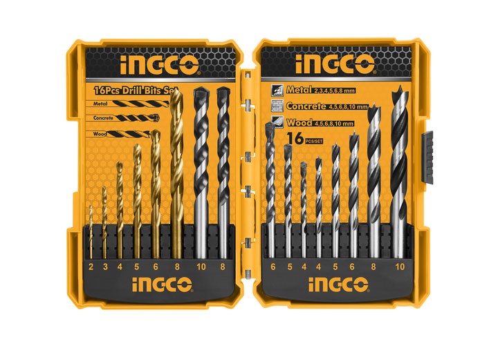 BỘ 16 MŨI KHOAN KIM LOẠI, BÊ TÔNG VÀ GỖ INGCO AKD9165