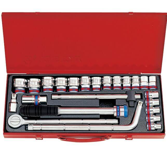 - 18 đầu tuýp 12 cạnh: 3/8, 7/16, 15/32, 1/2, 9/16, 19/32, 5/8, 11/16, 3/4, 25/32, 13/16, 7/8, 15/16, 1,