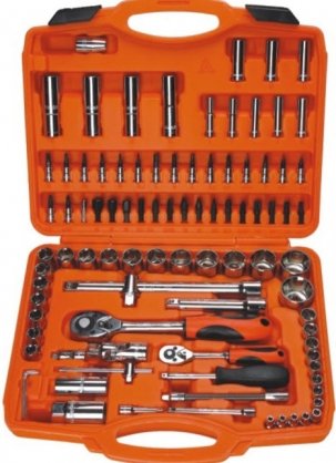 9 đầu tuýp hệ inch: 7/8″,13/16″,3/4″,11/16″,5/8″,9/16″,1/2″,7/16″,3/8″ + 8 đầu tuýp bông: E8,10,11,12,14,16,18,20