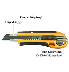 - Dao rọc giấy L-22 của hãng KDS điểm đặt biệt của loại dao này có chế độ tự động khóa khi bạn bật dao. Hai bên cạnh thân dao được trang bị một lớp cao su giúp bạn thoải mái khi làm việc trong thời gian dài.