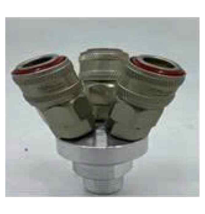 Đầu nối 3 chia tự động JSN SMY dùng để phân phối khí nén trong hệ thống máy nén khí, giúp kết nối và vận hành cùng lúc nhiều thiết bị như súng phun sơn, máy bắn đinh, súng xì khô, máy thổi bụi và các thiết bị khí nén khác trong xưởng cơ khí, nhà máy sản xuất.