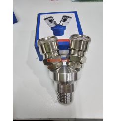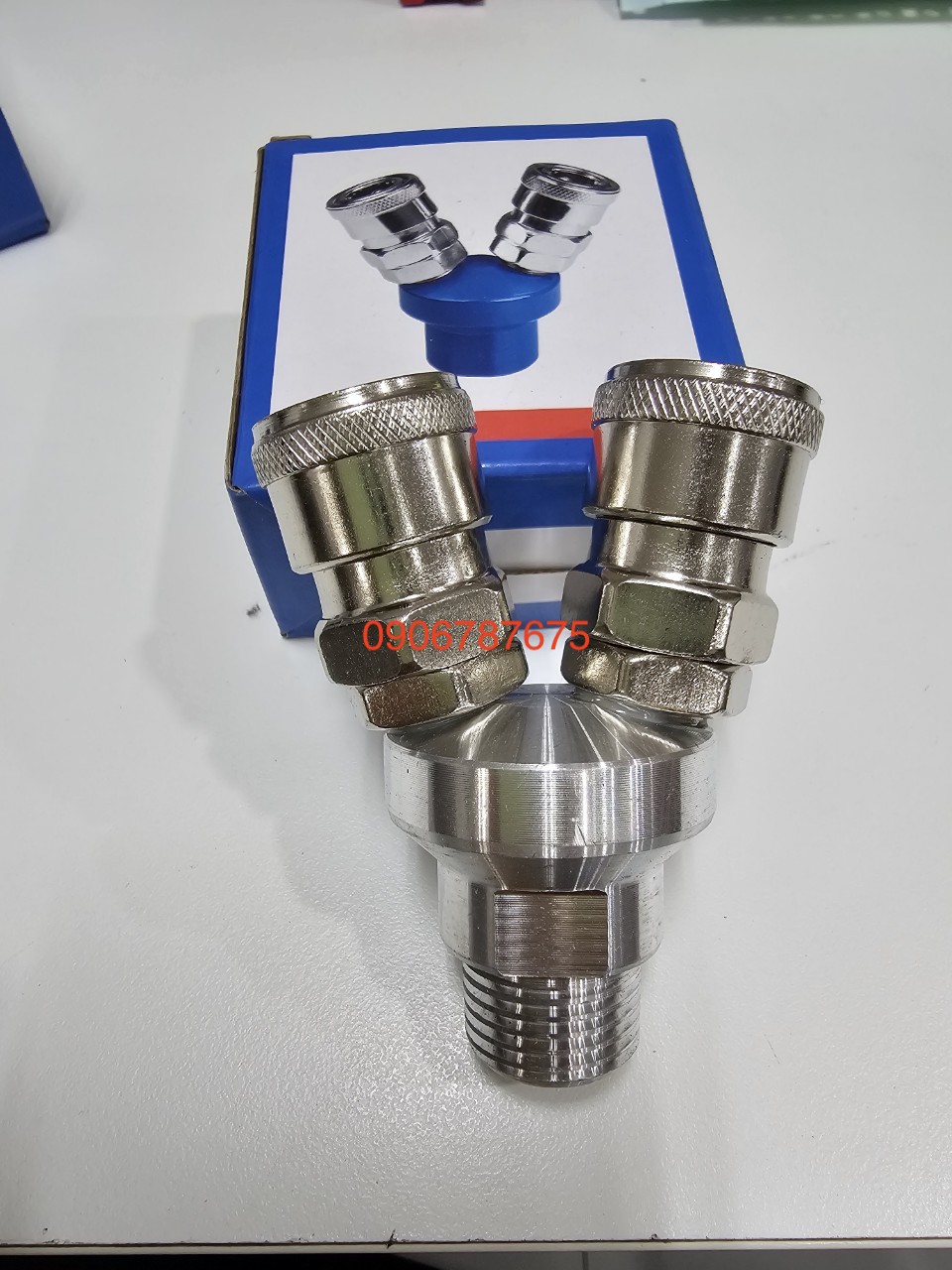 Cút chia 3 được làm bằng hợp kim, có vỏ bằng nhựa cứng. Một đầu có gen trong lắp vào máy nén khí, 1 đầu được chia làm 3 đường nối nhanh để nối với dây hơi.