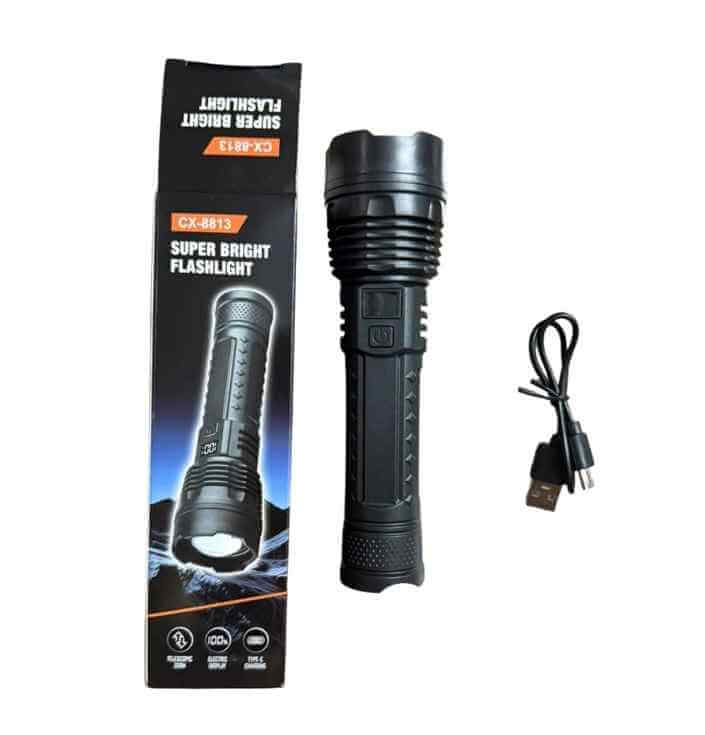 ĐÈN PIN SIÊU SÁNG ZOOM CX-8813 TL007546 là mẫu đèn pin cầm tay hiện đại, được trang bị công nghệ LED siêu sáng cho cường độ ánh sáng mạnh và ổn định, đáp ứng tốt nhu cầu chiếu sáng trong nhiều điều kiện khác nhau. Sản phẩm sở hữu chức năng zoom linh hoạt, cho phép điều chỉnh tia sáng từ rộng đến tập trung, giúp quan sát xa rõ nét hoặc chiếu sáng khu vực rộng tùy mục đích sử dụng. Thiết kế thân đèn chắc chắn, nhỏ gọn, dễ cầm nắm và mang theo, phù hợp dùng trong gia đình, sửa chữa, tuần tra, đi đêm hoặc dã ngoại. Đèn sử dụng pin sạc tiện lợi, tiết kiệm và thân thiện với người dùng, là lựa chọn lý tưởng cho nhu cầu chiếu sáng di động mạnh mẽ và bền bỉ.