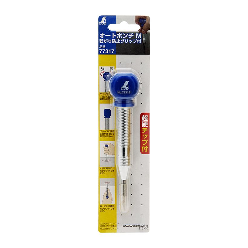 Đục lấy dấu tự động của Shinwa, lấy dấu rất nhanh và đơn giản, bạn chỉ việc nhấn 1 tay xuống nhẹ nhàng là bạn đã có dấu trên các bề mặt sắt, nhôm, gỗ, inox. Ngoài ra bạn có thể xoắn lò xo để tăng hay giảm độ tự động đậm để lấy dấu. Đầu đục làm bằng đồng, thân làm bằng sắt khối, tay nhấn được làm bằng nhựa ABS.
