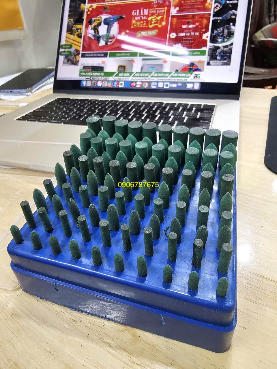 Bộ mũi mài đầu cao su xanh cán 3mm 100 chi tiết: xuất xứ: Trung Quốc, mới 100%