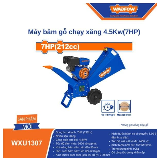 MÁY BĂM DĂM GỖ CHẠY XĂNG 4.5KW(7HP) 212CC WADFOW WXU1307