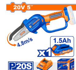 Phụ kiện Bao gồm: 1 chiếc cưa xích 5", 1 chiếc thanh cưa xích 5", 1 chiếc cờ lê, 1 bình dầu rỗng, 1 chiếc pin 20V 1.5Ah (WLBP515), 1 chiếc sạc (WFCP518). Điện áp sạc: 220-240V~50/ 60Hz. Đóng gói bằng hộp màu