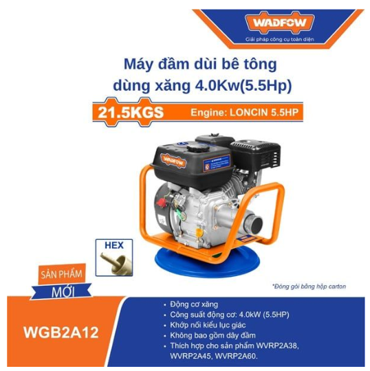 MÁY ĐẦM DÙI BÊ TÔNG CHẠY XĂNG 4.0KW(5.5HP) WADFOW WGB2A12