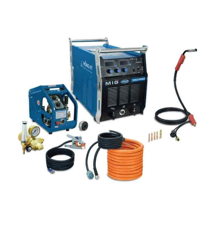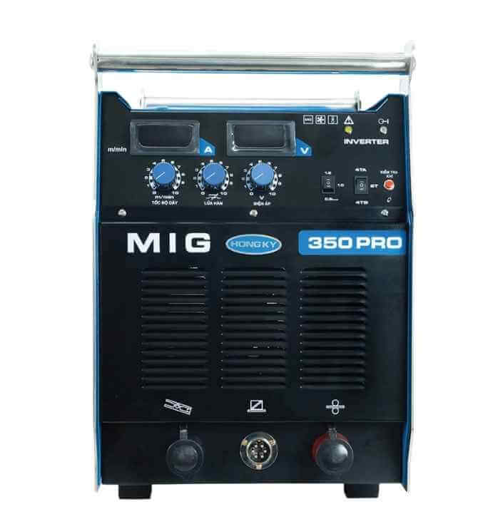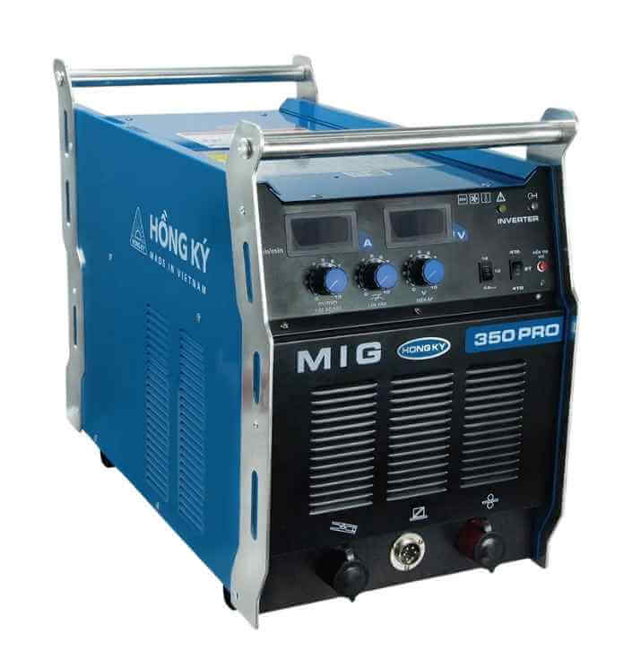 Máy hàn MIG350PRO Hồng Ký cung cấp nguồn đầu ra lên tới 350A, sử dụng khí CO2 hoặc Argon, hàn tốt với dây hàn có đường kính 0.8 - 1.2 mm. Chu kỳ tải duty cycle 60% @40°C nên máy hàn MIG350PRO có thể hàn liên tục 6 phút ở dòng hàn 350A trong môi trường nhiệt độ bình thường mà không báo quá nhiệt.