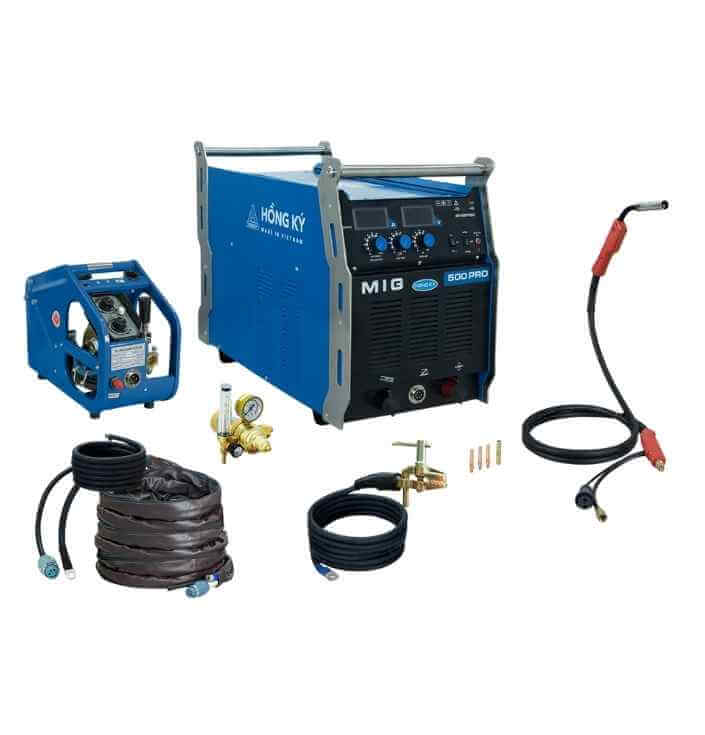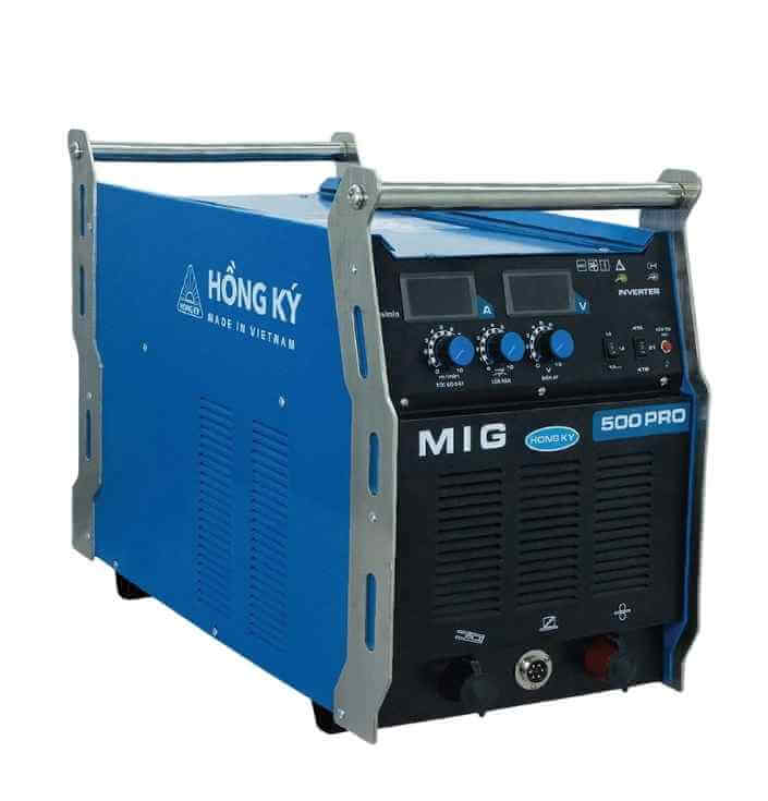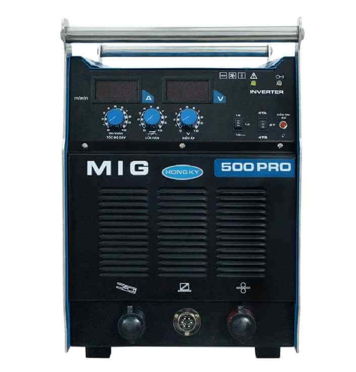Máy hàn điện tử MIG500PRO là siêu phẩm công suất lớn, sử dụng điện 3 pha 380V được Hồng Ký nghiên cứu, sản xuất tại Việt Nam. Máy được thiết kế công suất mạnh mẽ phục vụ trong các xưởng sản xuất, gia công cơ khí quy mô lớn hoặc lĩnh vực xây dựng như thi công công trình, kết cấu thép.