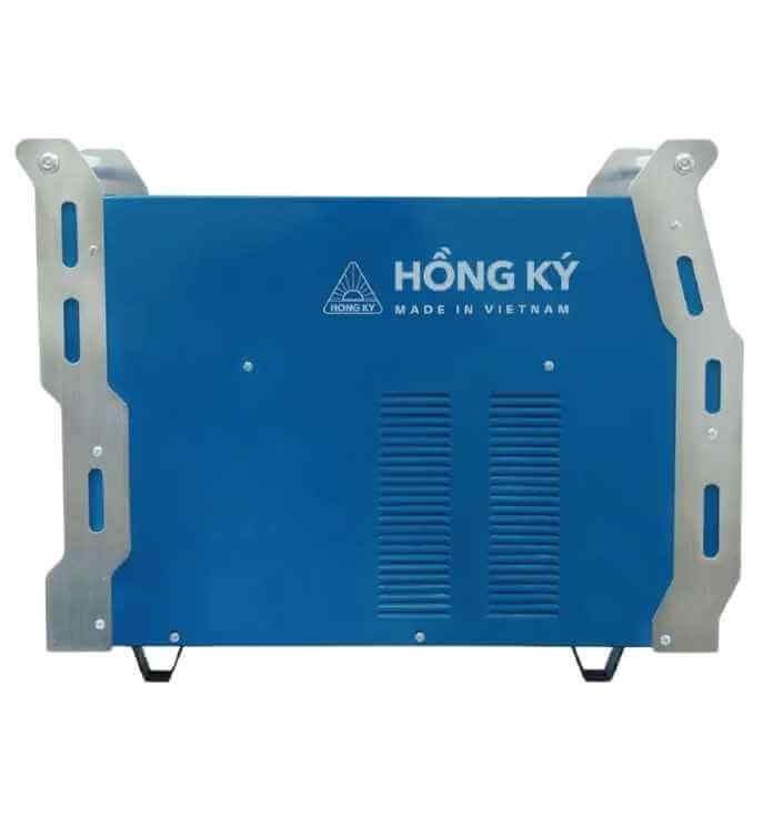 Máy hàn 500A Hồng Ký MIG500PRO có trọng lượng 45kg, được bao bọc bởi lớp sơn tĩnh điện màu vàng. Khác với các máy hàn truyền thống chỉ có 1 tay xách, với chiếc máy hàn công suất lớn MIG500PRO trang bị 2 tay xách được làm bằng inox rất chắc chắn, giúp người dùng mang vác di chuyển dễ dàng.