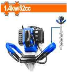 Công suất định mức (cc./wattolt): 52cc/1.4kw Tốc độ khoan đất: 0-265/phút Sử dụng cùng WDZ1A52-2 Động cơ 2 thì Dung tích bình nhiên liệu: 1200ml Tốc độ động cơ tối đa: 8000/phút Tốc độ không tải tối đa: 3300±300. Đóng gói bằng hộp carton