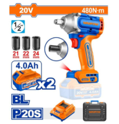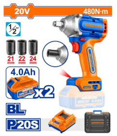 Phụ kiện Kèm 2 pin 4.0Ah (WLBP540), 1 sạc (WFCP518), 3 đầu tuýp (21,22,24mm),