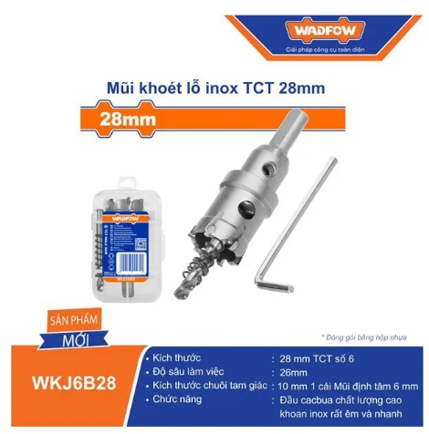 • MŨI KHOÉT LỖ INOX TCT 28MM WADFOW WKJ6B28