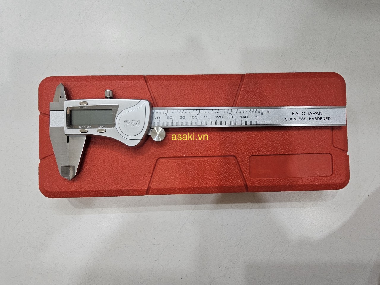 THƯỚC CẶP ĐIỆN TỬ CHỐNG NƯỚC IP54 KATO 150MM HỘP ĐỎ: