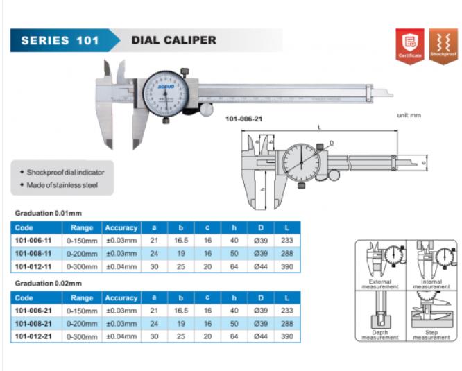 • THƯỚC KẸP ĐỒNG HỒ ACCUD 101-006-21 (0-150MM X 0.02MM)