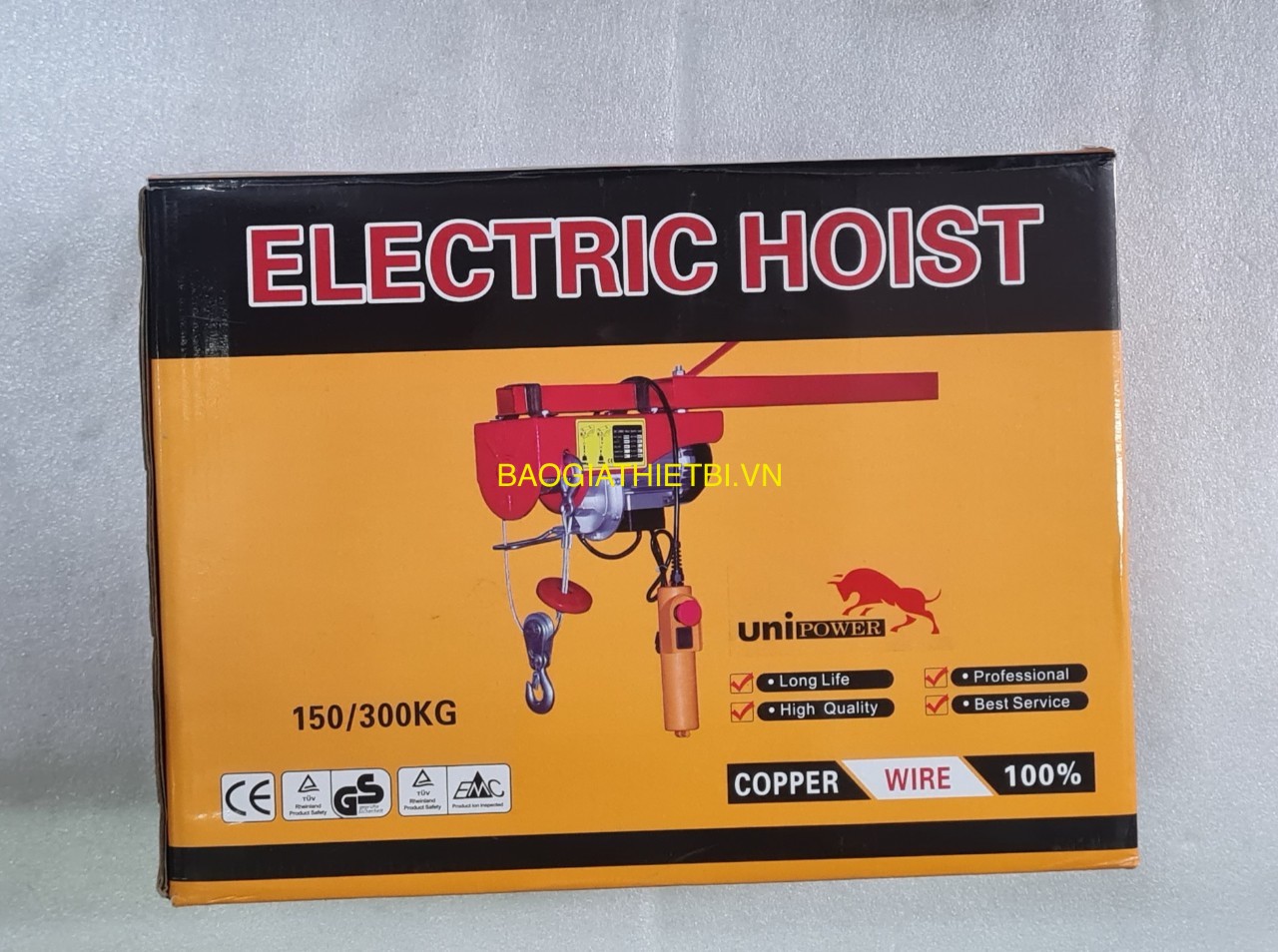 =>Công suất 1150W-Tốc độ nâng 10 mét/phút dây đơn 5 mét/phút dây đôi-Tải trọng nâng 300kg dây đơn 600kg dây đôi