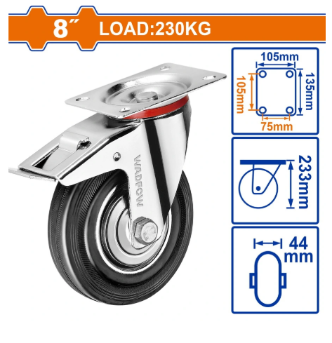 • BÁNH XE ĐẨY THÉP + CAO SU XOAY 8" (CÓ KHÓA) WADFOW WJL3383