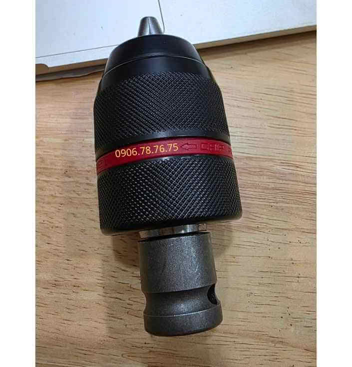 + Kẹp và tháo mũi khoan nhanh bằng tay không cần cái khóa.