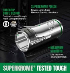 Hệ thống đầu khẩu đa dạng: Cung cấp đầy đủ các kích thước từ 4mm đến 14mm ở cả hai dạng Tiêu chuẩn (Standard) và Đầu sâu (Deep), giúp xử lý linh hoạt mọi vị trí ốc vít, kể cả những nơi hốc sâu khó tiếp cận.