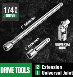 Phụ kiện hỗ trợ toàn diện: Đi kèm thanh nối dài nhiều kích cỡ và khớp nối vạn năng, cho phép bạn luồn lách và làm việc hiệu quả trong những không gian chật hẹp nhất.