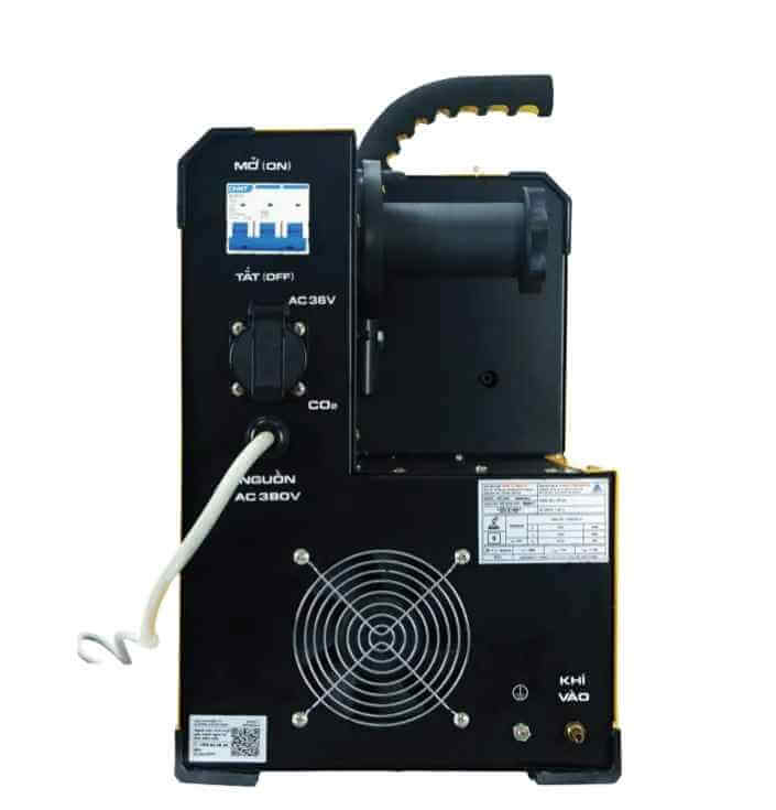 Máy hàn HKMIG250-3 với màu vàng nổi bật, bộ cấp dây được tính hợp đi liền với máy chính, giúp chiếc máy trở nên gọn gàng, mạnh mẽ, cùng tay cầm chắc chắn, giúp dễ dàng di chuyển.