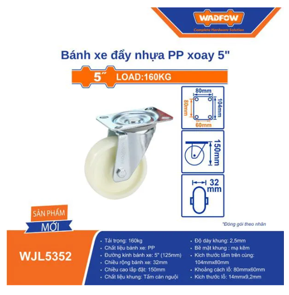 • BÁNH XE ĐẨY NHỰA PP XOAY 5" WADFOW WJL5352