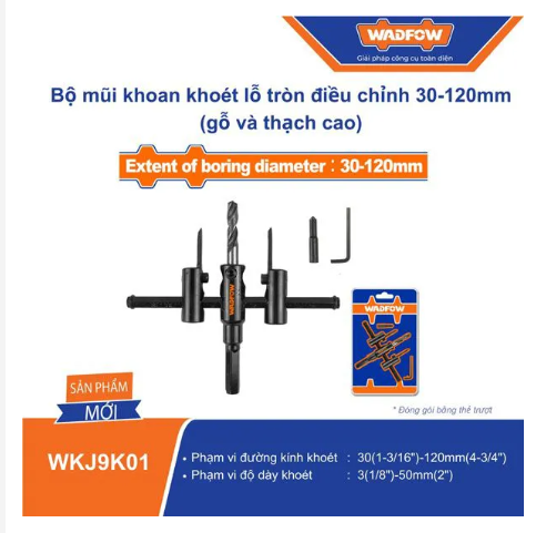 • BỘ MŨI KHOAN KHOÉT LỖ TRÒN ĐIỀU CHỈNH 30-120MM (GỖ VÀ THẠCH CAO) WADFOW WKJ9K01
