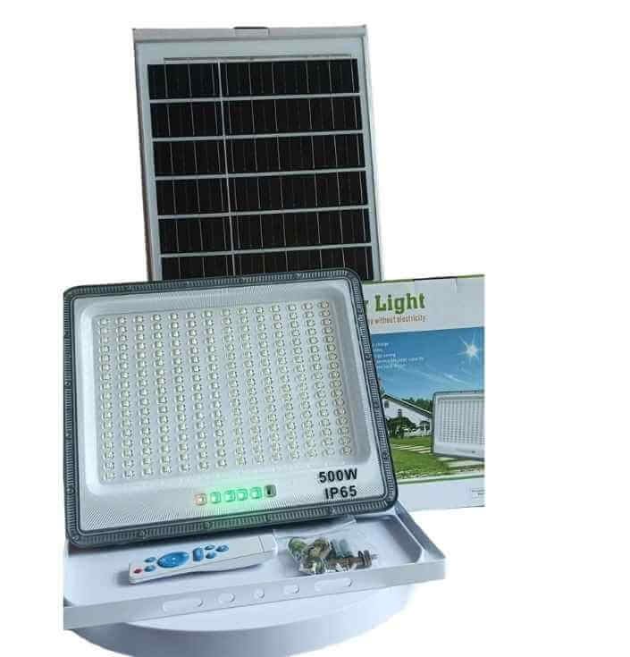 Đèn pha NLMT thấu kính 500W kèm remote – 6 pin (T10) TL000113 là giải pháp chiếu sáng ngoài trời hiện đại, tiết kiệm điện và thân thiện với môi trường. Sản phẩm sử dụng năng lượng mặt trời (NLMT) giúp hoạt động hoàn toàn tự động, không cần đi dây điện phức tạp, phù hợp lắp đặt tại sân vườn, công trình, kho bãi, bãi xe hay khu vực an ninh. Đèn được trang bị thấu kính cao cấp giúp tăng cường độ hội tụ ánh sáng, cho độ sáng mạnh, chiếu xa và rõ nét hơn so với đèn thông thường. Hệ thống 6 pin dung lượng cao đảm bảo thời gian chiếu sáng dài, ổn định suốt đêm. Đi kèm remote điều khiển từ xa tiện lợi, người dùng dễ dàng bật/tắt, hẹn giờ hoặc điều chỉnh chế độ chiếu sáng theo nhu cầu. Với thiết kế chắc chắn, khả năng chống nước tốt và độ bền cao, đèn pha NLMT 500W T10 là lựa chọn tối ưu cho nhu cầu chiếu sáng tiết kiệm và hiệu quả lâu dài.
