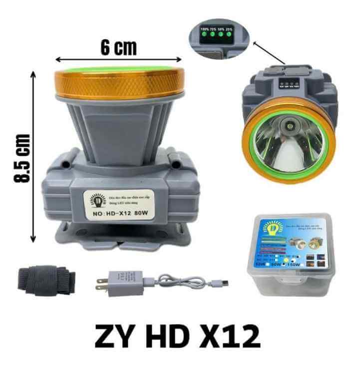 Đèn pin đội đầu siêu sáng 80W ZY HD X12 là dòng đèn đeo trán công suất lớn, thiết kế nhỏ gọn, tiện lợi cho nhiều hoạt động như đi rừng, câu cá, sửa chữa, cúp điện hoặc làm việc ban đêm.