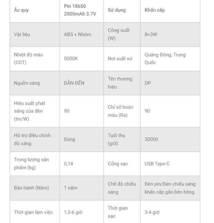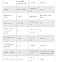 ĐÈN PIN TÍCH ĐIỆN BẰNG NHÔM 2IN1 DP-9202A TL004893 là dòng đèn pin cao cấp được thiết kế từ hợp kim nhôm bền bỉ, mang lại khả năng chịu va đập tốt và tản nhiệt hiệu quả. Sản phẩm tích hợp công nghệ LED siêu sáng, cho cường độ ánh sáng mạnh, ổn định, đáp ứng tốt nhu cầu chiếu sáng trong gia đình, công trường, sửa chữa hay đi dã ngoại. Với thiết kế 2in1 tiện lợi, đèn vừa có thể sử dụng như đèn pin cầm tay vừa linh hoạt chuyển đổi nhiều chế độ chiếu sáng khác nhau. Pin sạc dung lượng lớn giúp thời gian sử dụng lâu dài, tiết kiệm chi phí thay pin. Đây là lựa chọn lý tưởng cho người dùng cần một chiếc đèn pin nhỏ gọn, bền đẹp, ánh sáng mạnh và đa năng.