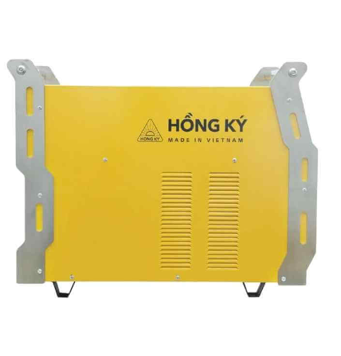 Máy hàn 500A Hồng Ký HKMIG500 có trọng lượng 45kg, được bao bọc bởi lớp sơn tĩnh điện màu vàng. Khác với các máy hàn truyền thống chỉ có 1 tay xách, với chiếc máy hàn công suất lớn Hồng Ký Mig500 trang bị 2 tay xách được làm bằng inox rất chắc chắn, giúp người dùng mang vác di chuyển dễ dàng.