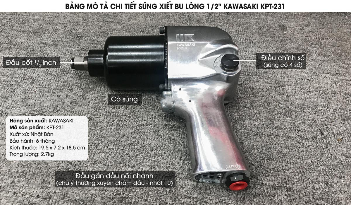 MÁY VẶN BULÔNG 1/2 INCH KAWASAKI KPT-231: