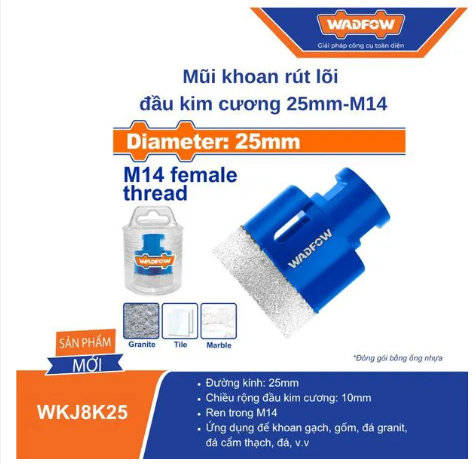 • MŨI KHOAN RÚT LÕI ĐẦU KIM CƯƠNG 25MM-M14 WADFOW WKJ8K25