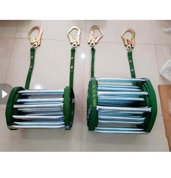 Thang dây thoát hiểm ống trắng thường được trang bị móc treo thép chịu lực, dễ dàng cố định vào ban công, lan can hoặc khung cửa sổ. Các bậc thang cứng cáp, khoảng cách hợp lý giúp leo xuống an toàn, hạn chế trơn trượt. Nhờ thiết kế gọn nhẹ, sản phẩm có thể cuộn tròn bảo quản trong hộp hoặc túi chuyên dụng, sẵn sàng sử dụng khi cần.