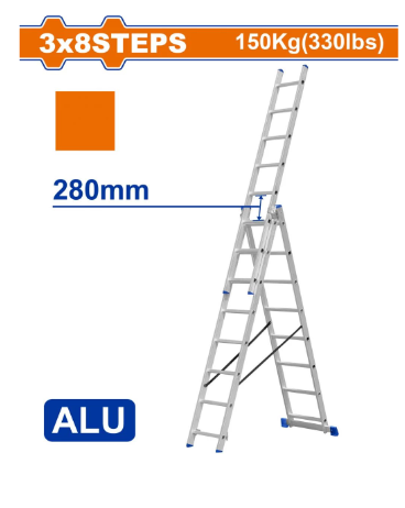 • THANG XẾP NHÔM KÉO DÀI 3 ĐOẠN 3X8 WADFOW WLD6H38