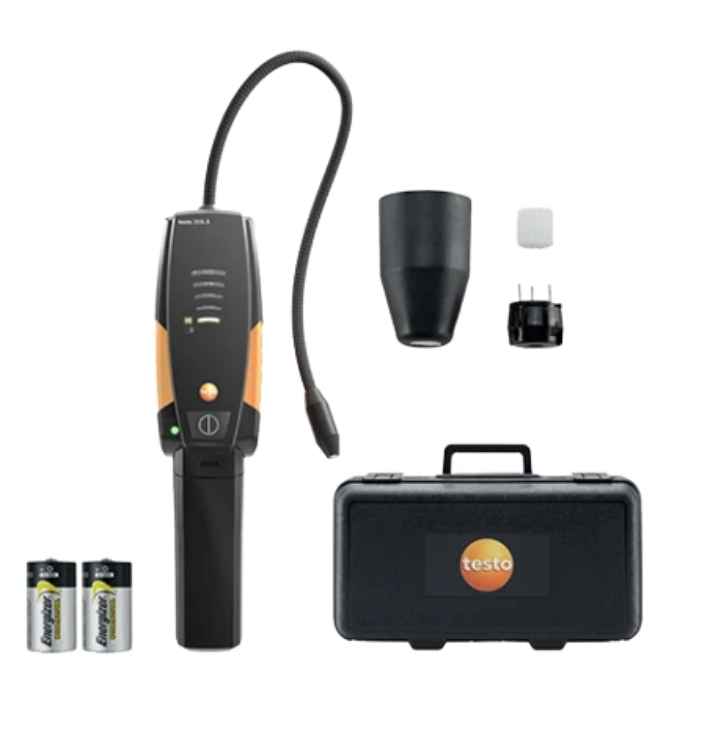 Máy phát hiện rò khí tủ lạnh Testo 316-3 cho các chất làm mát, đầu cảm biến, hộp đựng, chứng nhận hiệu chuẩn, pin, bộ lọc.